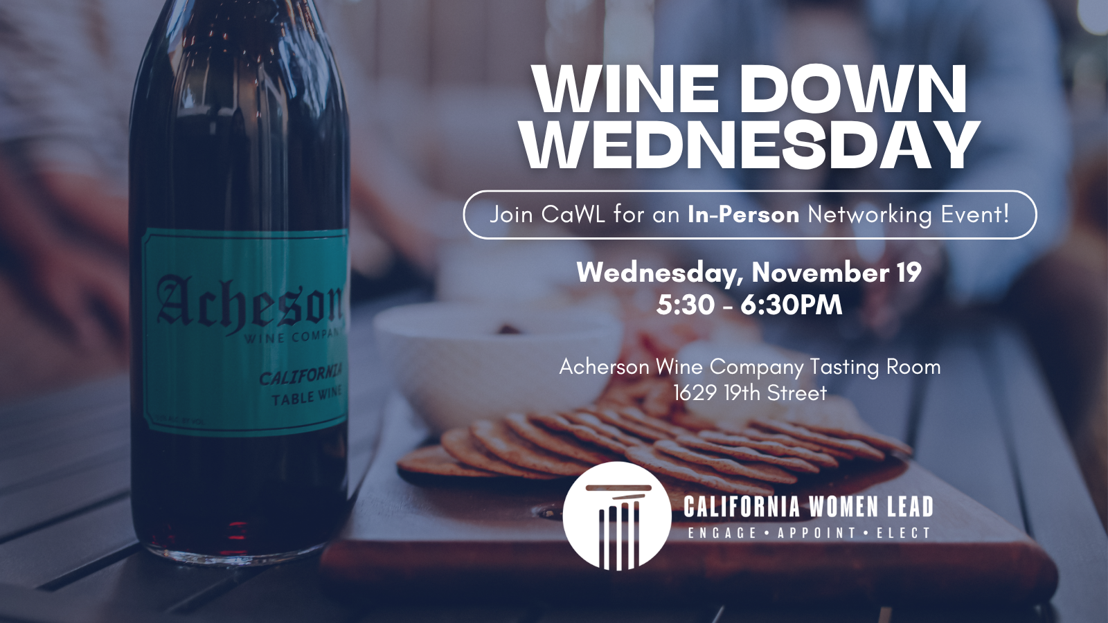 Join CaWL for a relaxed evening of connection and conversation at the Acheson Wine Company Tasting Room. (1629, 19th Street, Sacramento).